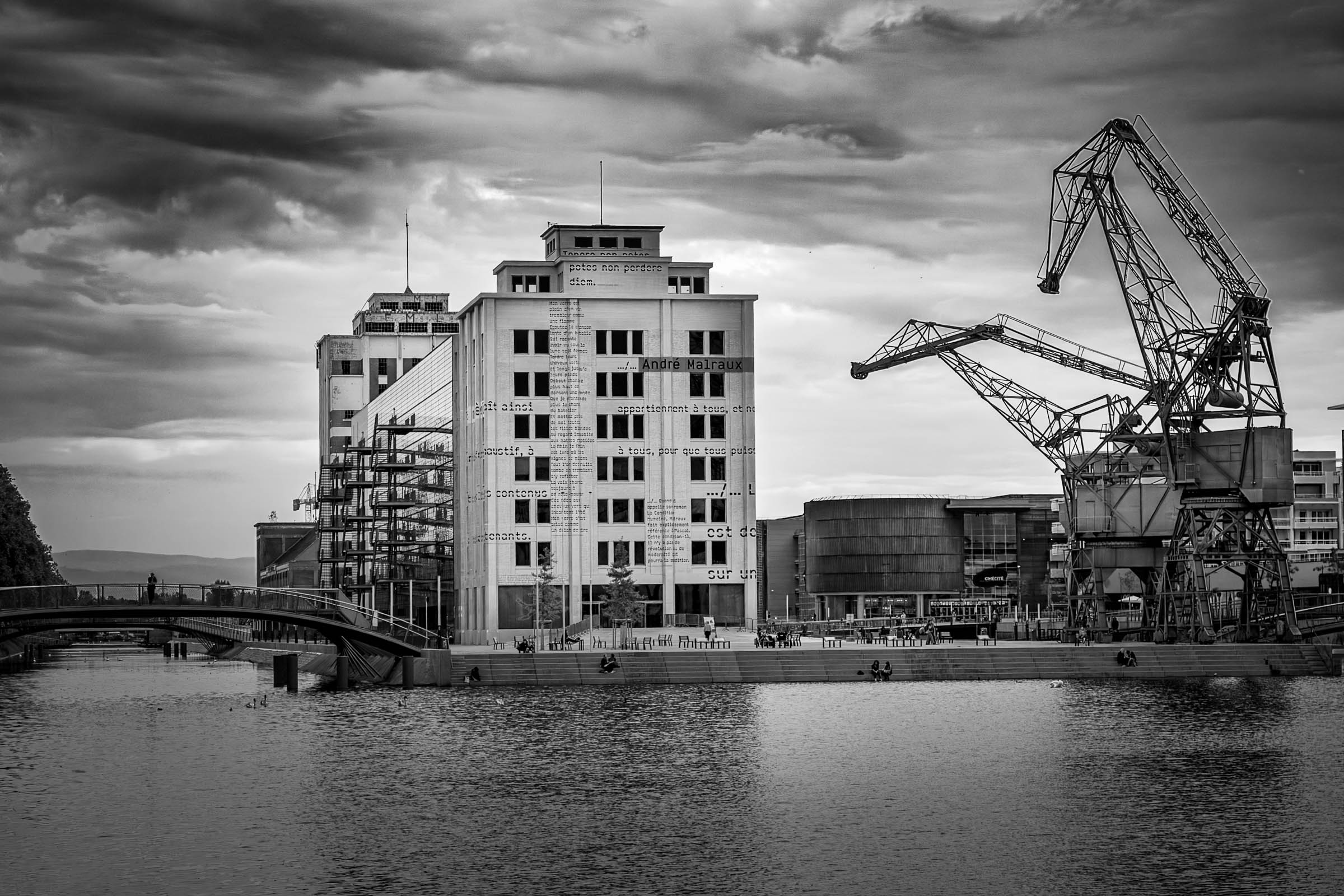 Bibliothèque André Malraux, Bassin Vauban, grues, Strasbourg